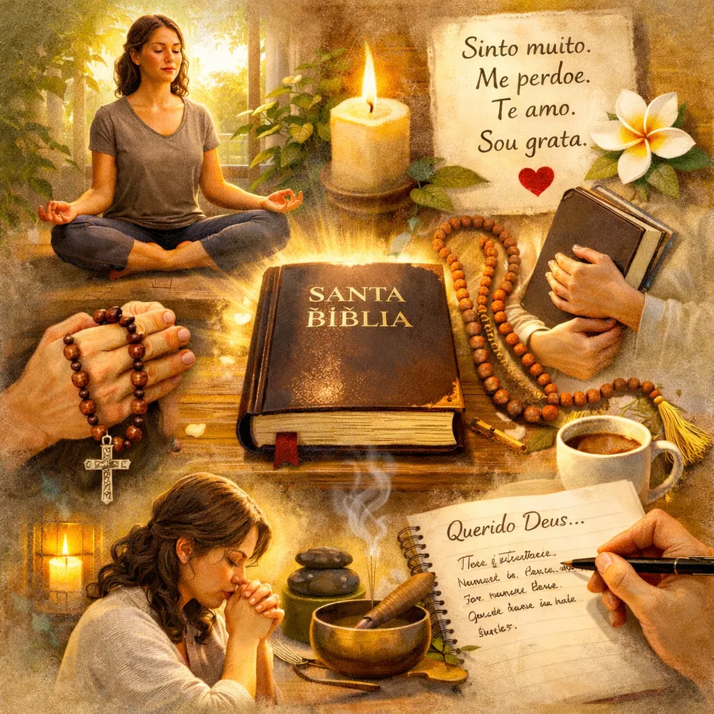 Atualmente, minha rotina funciona assim: leio um capítulo da Bíblia, faço ho’oponopono, medito de 5 a 10 minutos e começo o dia estudando. Às vezes, à noite, rezo o terço quando sinto necessidade. Há dias em que consigo fazer tudo certinho, e há dias em que nada acontece — e tudo bem. O que importa é manter a conexão ligada, mesmo quando a rotina coloca a prática em segundo plano.